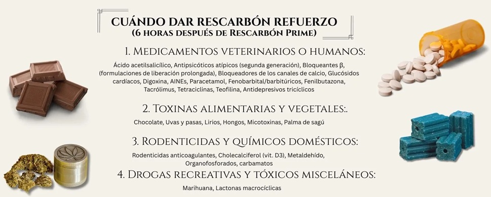 Ideal para toxinas con recirculación enterohepática, liberación prolongada o vaciado gástrico lento, como rodenticidas anticoagulantes, colecalciferol, ciertos fármacos y toxinas vegetales.