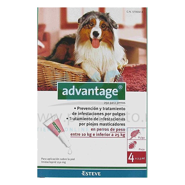 Advantage 250 4 Pipetas para Perros 10 a 25 Kg