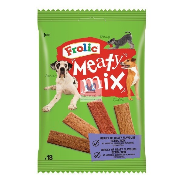 El snack para perros Frolic tiras de carne son unas deliciosas chuches para perros elaboradas con tiras de carne planas y sabores diferentes: buey, pollo, cordero, pato… Le sorprenderán.